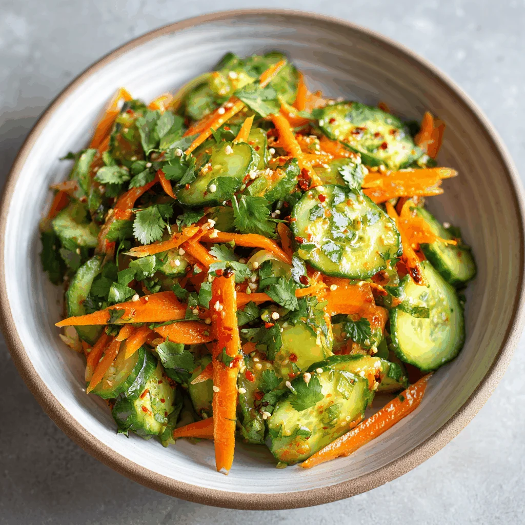 Alright, let’s roll up those sleeves and get into it! Start by washing and drying your cucumber and carrots. Using a sharp knife or a julienne peeler, cut them into thin strips and place them in a large mixing bowl. Feel the excitement building? I know I do!