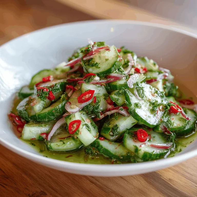 Let’s talk about the stars of our show! Asian cucumbers are the heroes here, offering a delightful crunch and subtle sweetness. I love using either English or Persian cucumbers for their thin skins and fewer seeds, making them perfect for salads. The harmonious blend of rice vinegar, soy sauce, and sesame oil brings a beautiful balance of flavors, while the toasted sesame seeds and green onions add an irresistible aroma and texture. Trust me, these ingredients are a match made in salad heaven!