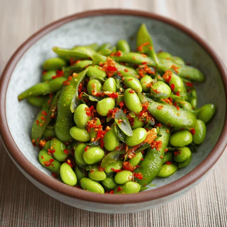 Alright, let’s get our hands dirty and bring this salad to life! Start by slicing those cucumbers nice and thin. Sprinkle them with a pinch of salt and let them sit for a bit to release any excess water. This step is key for getting that perfect crunch. While they rest, grab a large mixing bowl and toss in the cooled edamame, fresh cilantro, green onions, and minced garlic. Now, let’s whisk together our dressing in a small bowl—soy sauce, rice wine vinegar, chili crisp, and sesame oil. Pour this spicy concoction over your salad ingredients and toss it all together until everything is beautifully coated. For an extra touch, sprinkle some sesame seeds on top. Pop it in the fridge for at least 30 minutes to let those flavors mingle. Serve chilled and enjoy!
