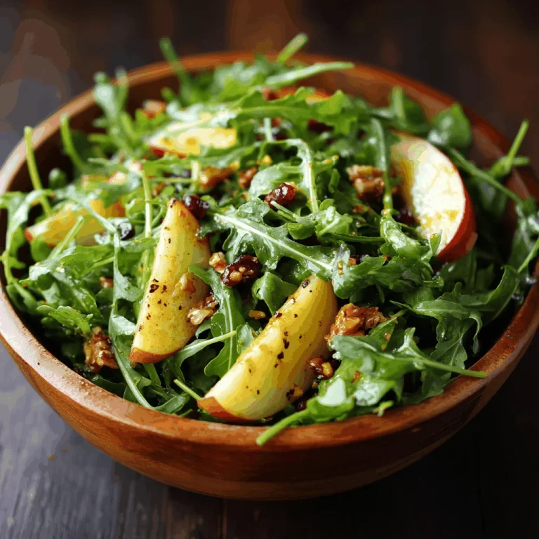 This Arugula Apple Salad is a testament to the power of simple, fresh ingredients. I love the peppery zing of arugula—it’s like a little wake-up call for your taste buds! Paired with crisp apples and creamy goat cheese, it’s a match made in salad heaven. The candied pecans add a sweet crunch that’s just irresistible.