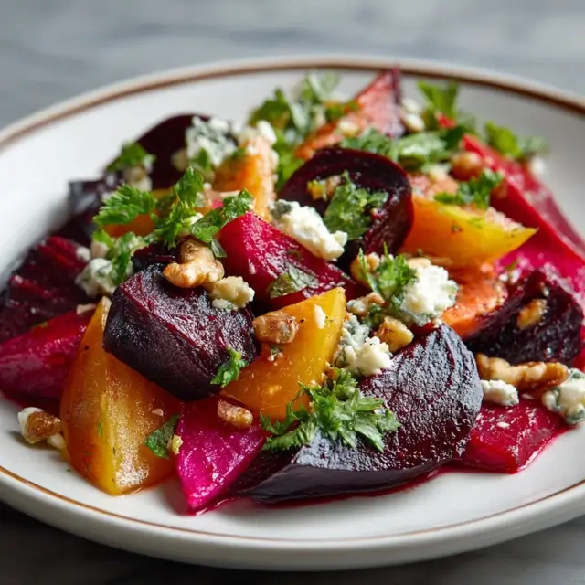 A refreshing salad featuring roasted beets, crisp cucumbers, and creamy feta, perfect for any occasion.