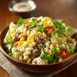 In your salad bowl, combine the lettuce, cooked beef, cheese, pickles, and onion. Drizzle with that glorious Big Mac sauce and toss until everything is coated. Sprinkle fresh parsley over the top if you’re feeling fancy, and serve immediately. Enjoy the medley of flavors that’s both nostalgic and refreshing.