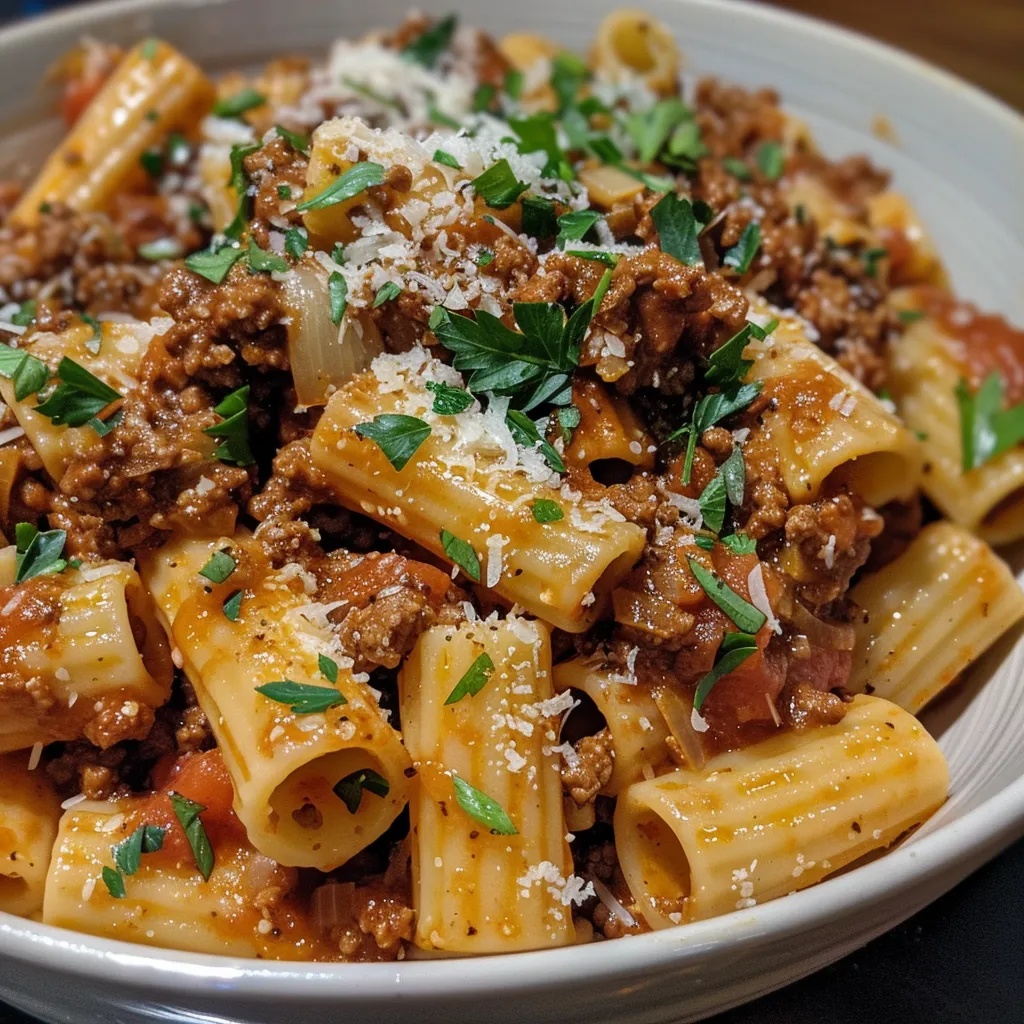 A hearty and flavorful beef ragu pasta dish with rich tomato sauce, perfect for a satisfying meal.