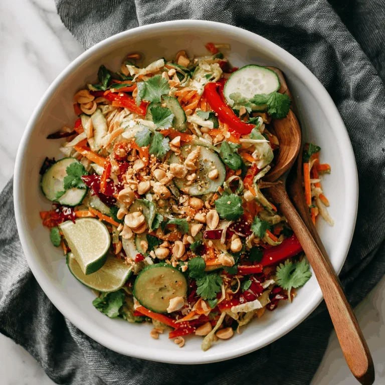 This Thai Crunch Salad is all about freshness and flavor. From the crisp shredded cabbages to the spicy kick of serrano pepper, each ingredient brings its own unique flair. I adore using natural peanut butter for the sauce—it adds a creamy richness that ties everything together beautifully. And don’t even get me started on the herbs! Cilantro, Thai basil, and mint bring a refreshing burst of flavor that’s simply irresistible.