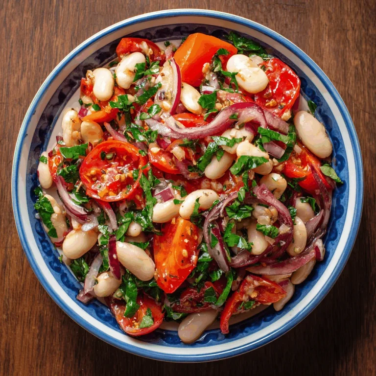 Ready to create some kitchen magic? Let’s do this together! Start by draining and rinsing those white beans thoroughly—no one likes a soggy salad. Next, chop up your cherry tomatoes, cucumber, red onion, olives, and parsley. In a large bowl, combine all these vibrant ingredients with the beans, feta, and parsley. Now, let’s whip up a quick dressing: whisk together lemon juice, olive oil, salt, and pepper in a small bowl. Pour this zesty goodness over your salad and toss gently to combine. Let the salad sit for 10–15 minutes to let those flavors mingle and get to know each other. Give it a taste, adjust the seasoning as needed, and voila! Your Mediterranean White Bean Salad is ready to shine.